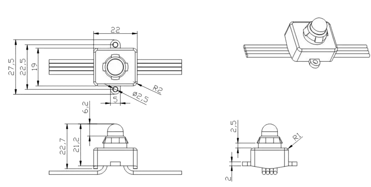 Clip into a 12mm drilled hole