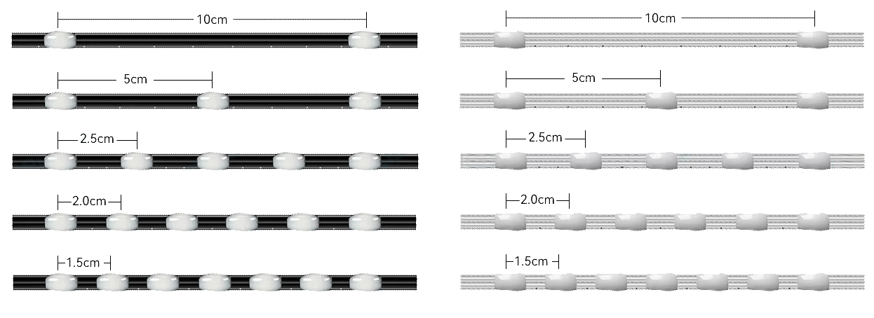 1.5 cm spacing, a 1000-pixel string is 15 meters long