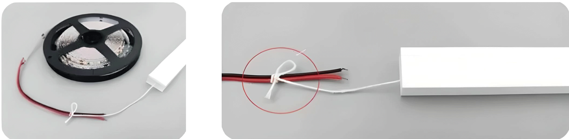 Step 1: Attach the LED strip traction wire inside the neon profile to the LED strip wire.