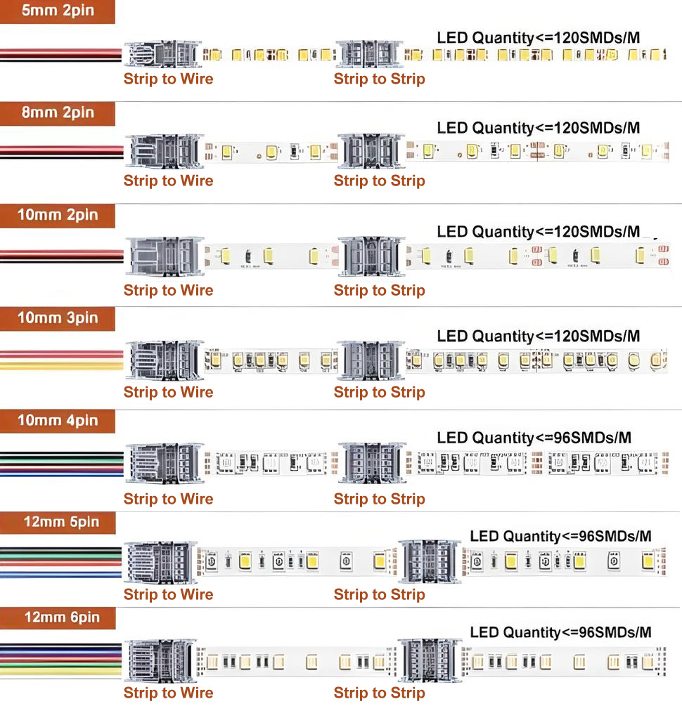Solderless Clamp-On SMD LED Strip Connectors, 2/3/4/5/6pin 8/10/12mm AvailableSpecial Price $0.40 Regular Price $0.50 -