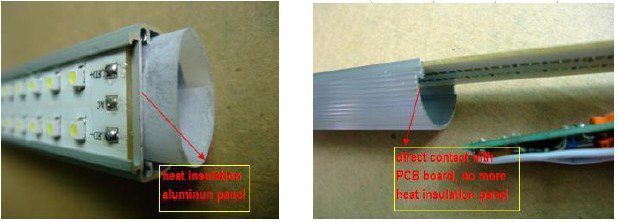 Heat insulation aluminum panel here, good for conduct and radiate heat, ensure a longer life span, this panel also help a lot the immobility of the tube itself.
