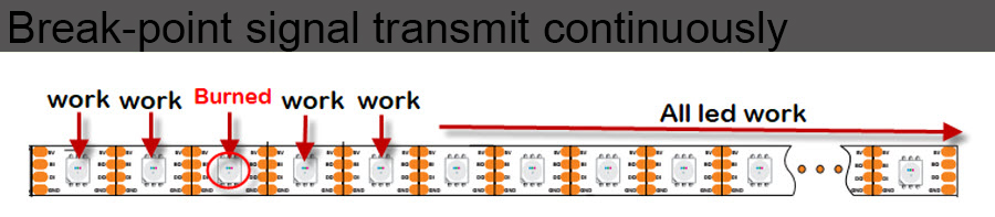 WS2815 Addressable RGB LED Strip, 12V Dual Signal Transmission, 144/60/30 LEDs/m Density Available